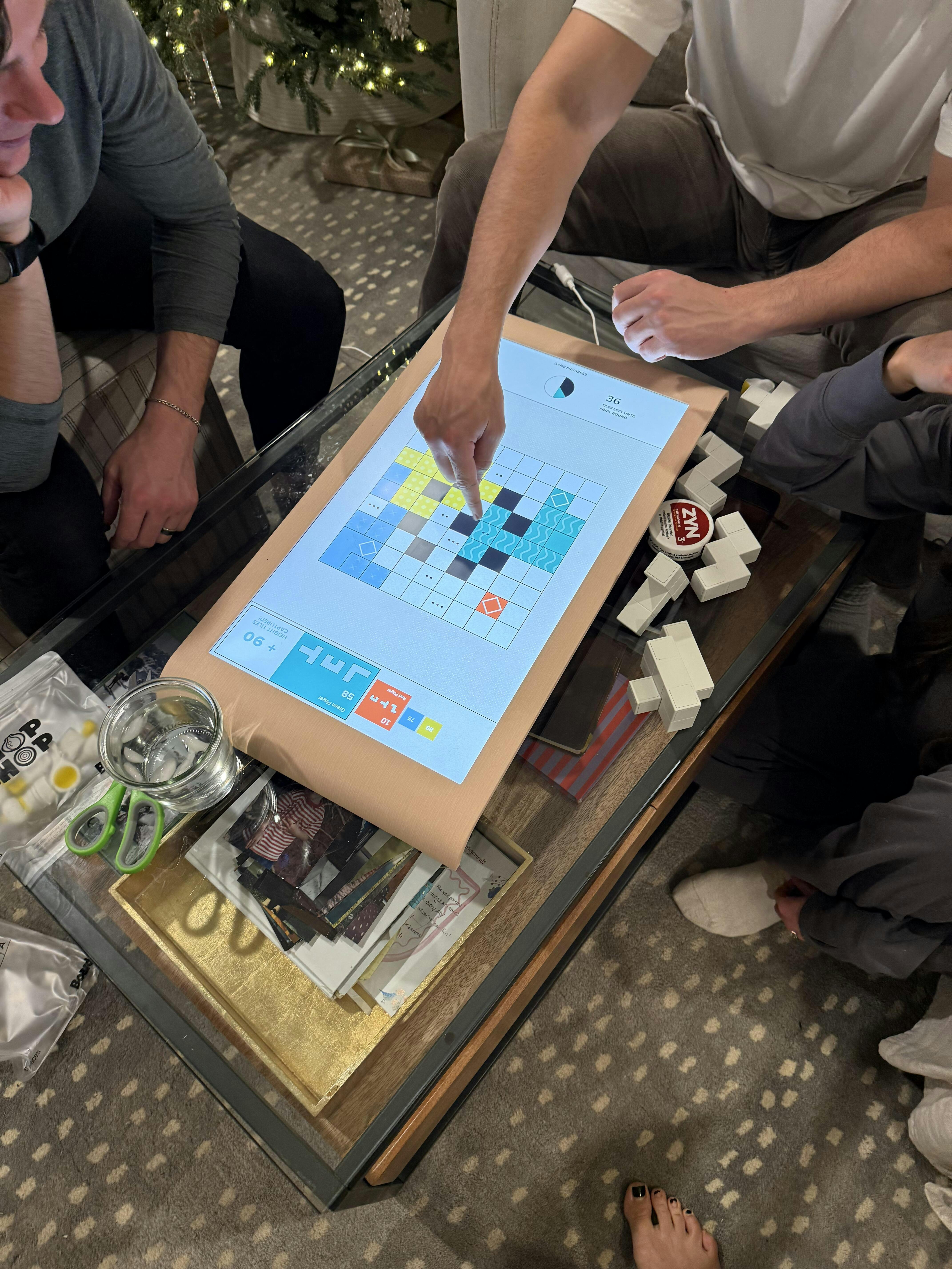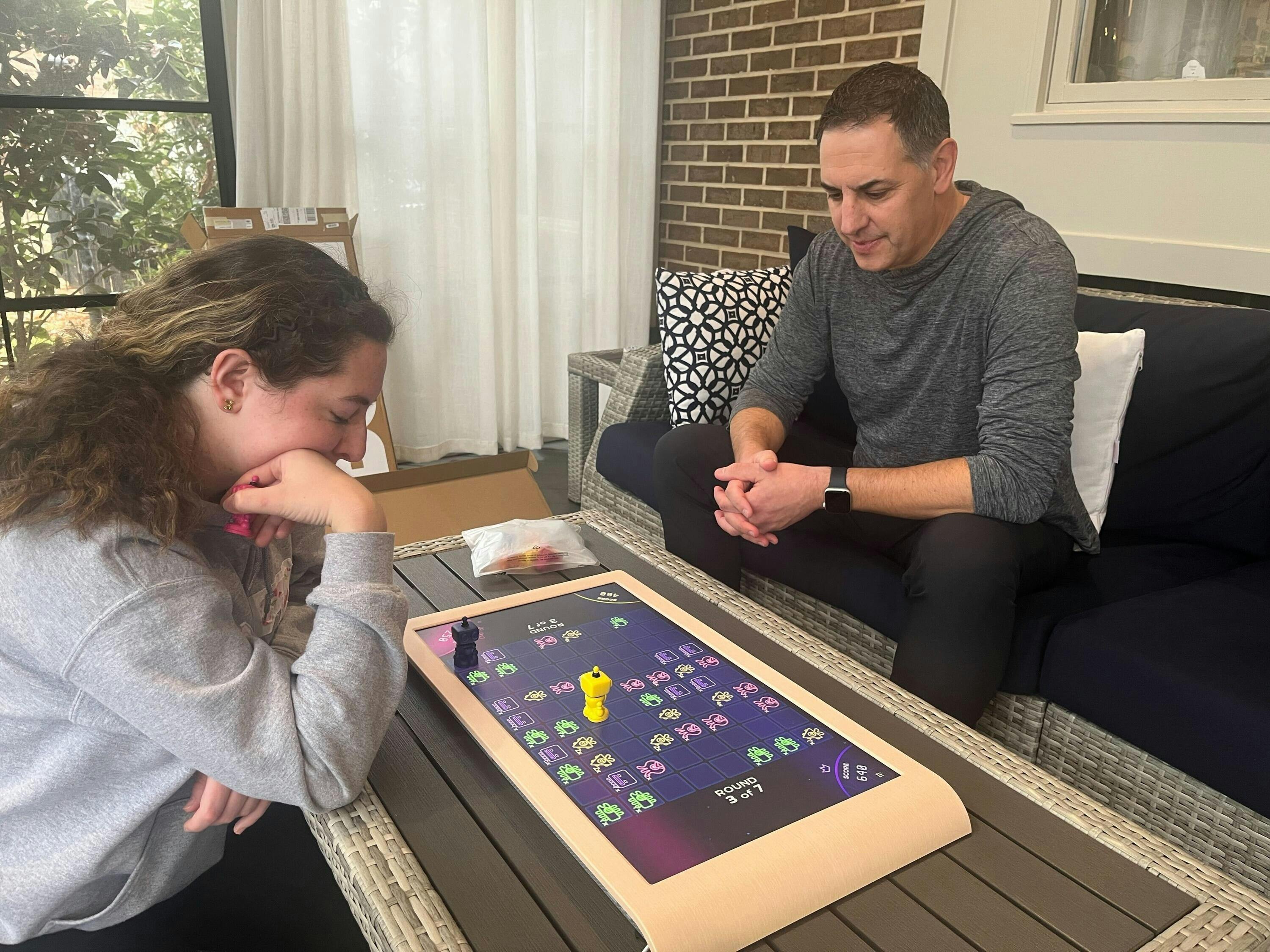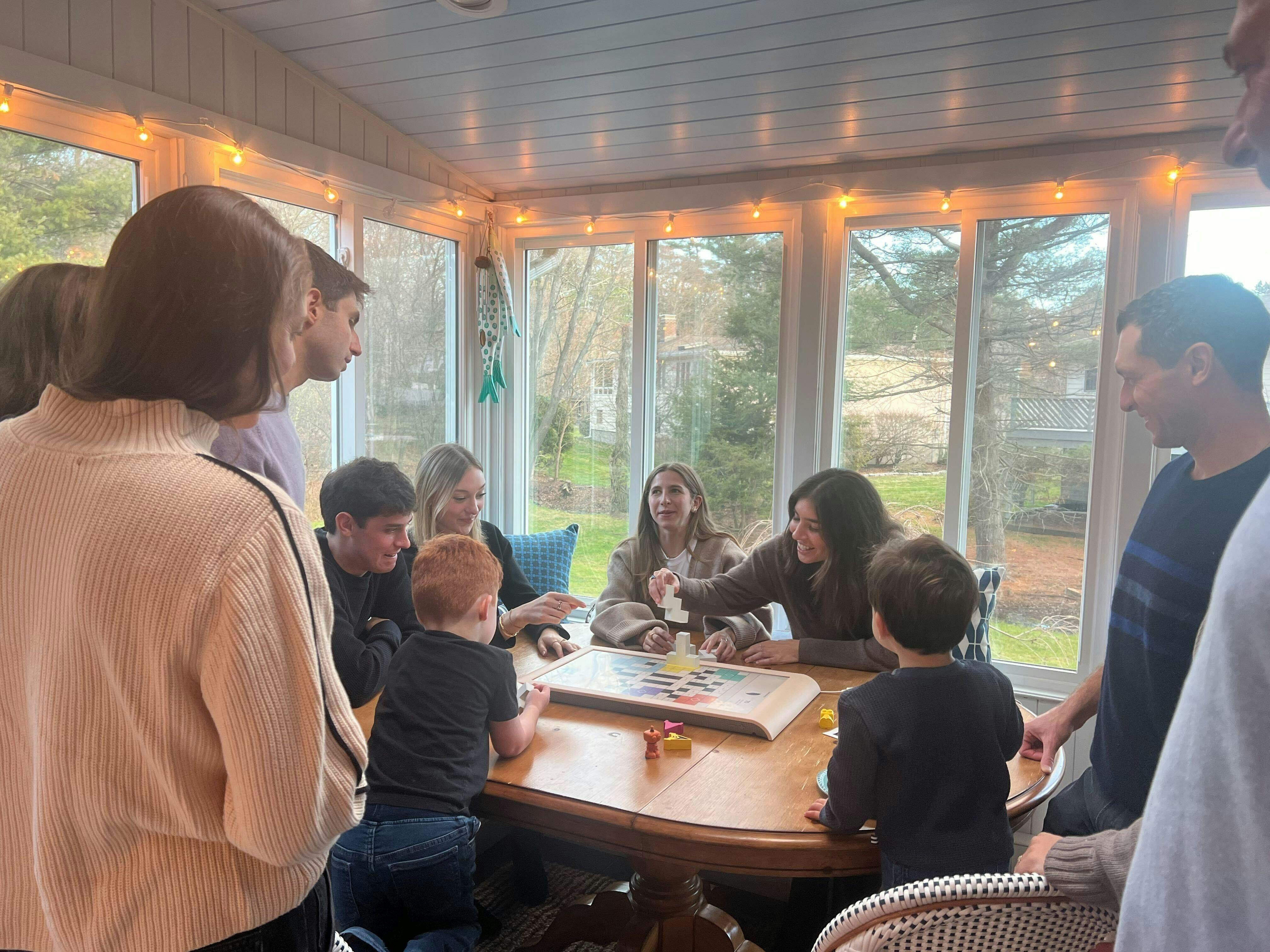 It's been three days since we received our Board and our family is hooked. We're a family of four with two girls ages 8 and 9, who grew up loving puzzles, board and card games, and very recently got into playing mahjong. Competitive pvp games are their favorite, and Strata has captured their competitive spirit and become a must-play game after dinner each night. They seem to be progressing quickly up the learning curve as their strategy and approach to the early and mid game has really leveled up after a few games, thinking about how to lock their own color squares while capturing new territory toward opposing color areas. The other game they've really gotten into is Save the Bloogs, as it pushes them to creatively use pieces in a progressive fashion to beat each level. Board is an absolutely wonderful way to get them off of their ipads and into more interactive, competitive fun. We can't wait to dive deeper into some of the other more collaborative/co-op games like Spycraft soon!